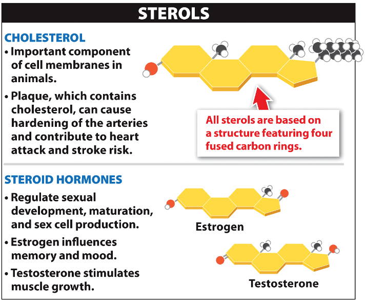 Cholesterol molecules are important components of animal plasma membranes, keeping the membrane fluid.